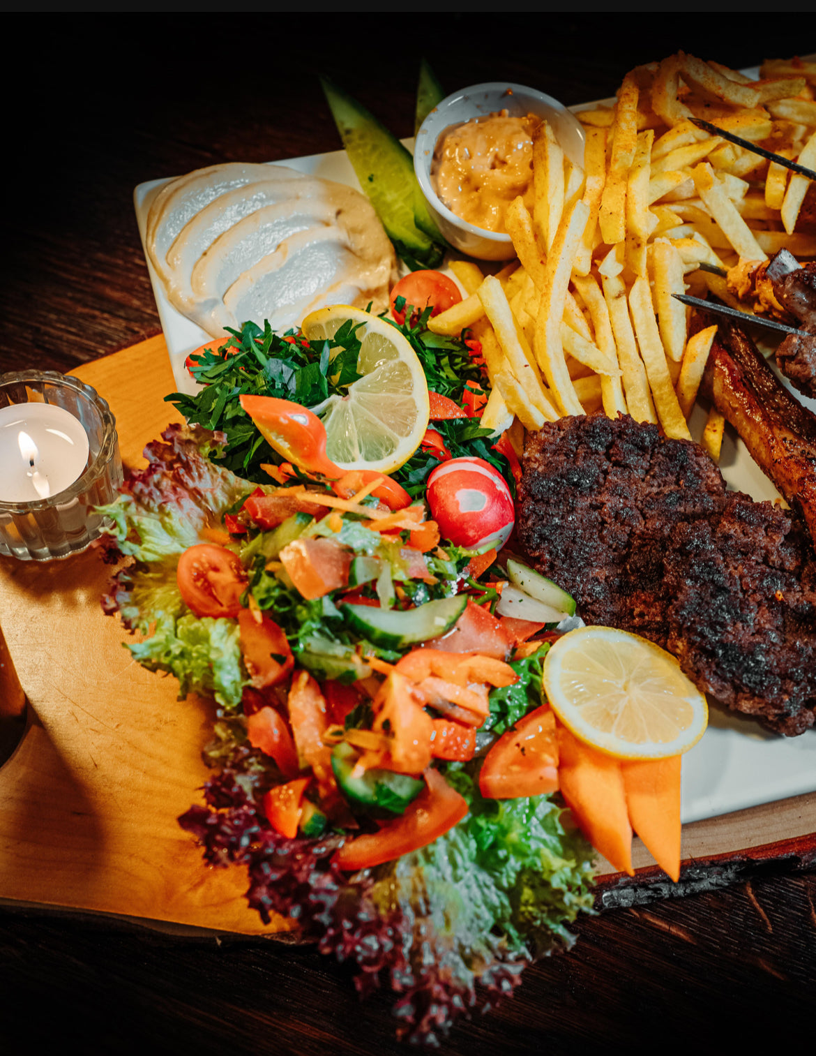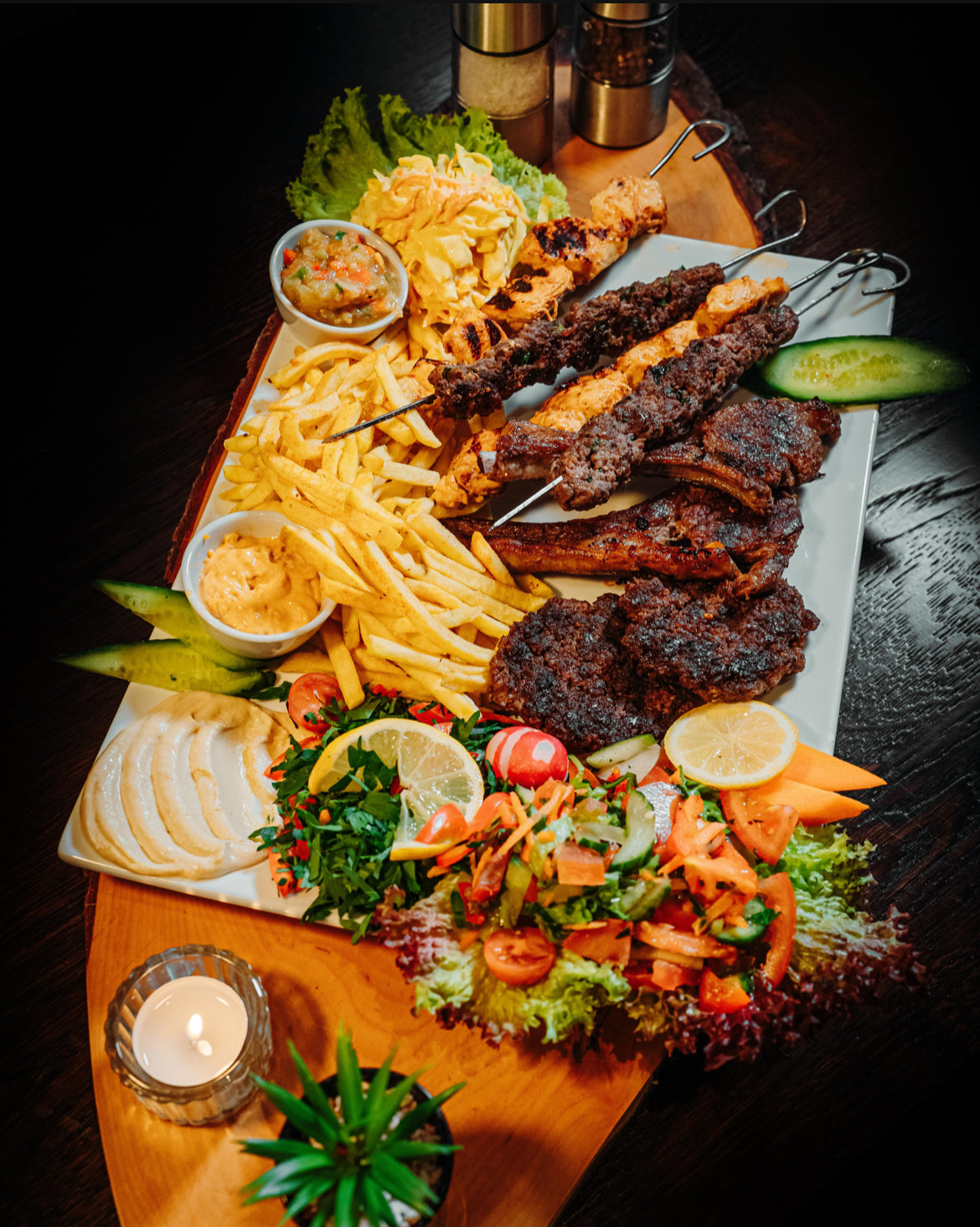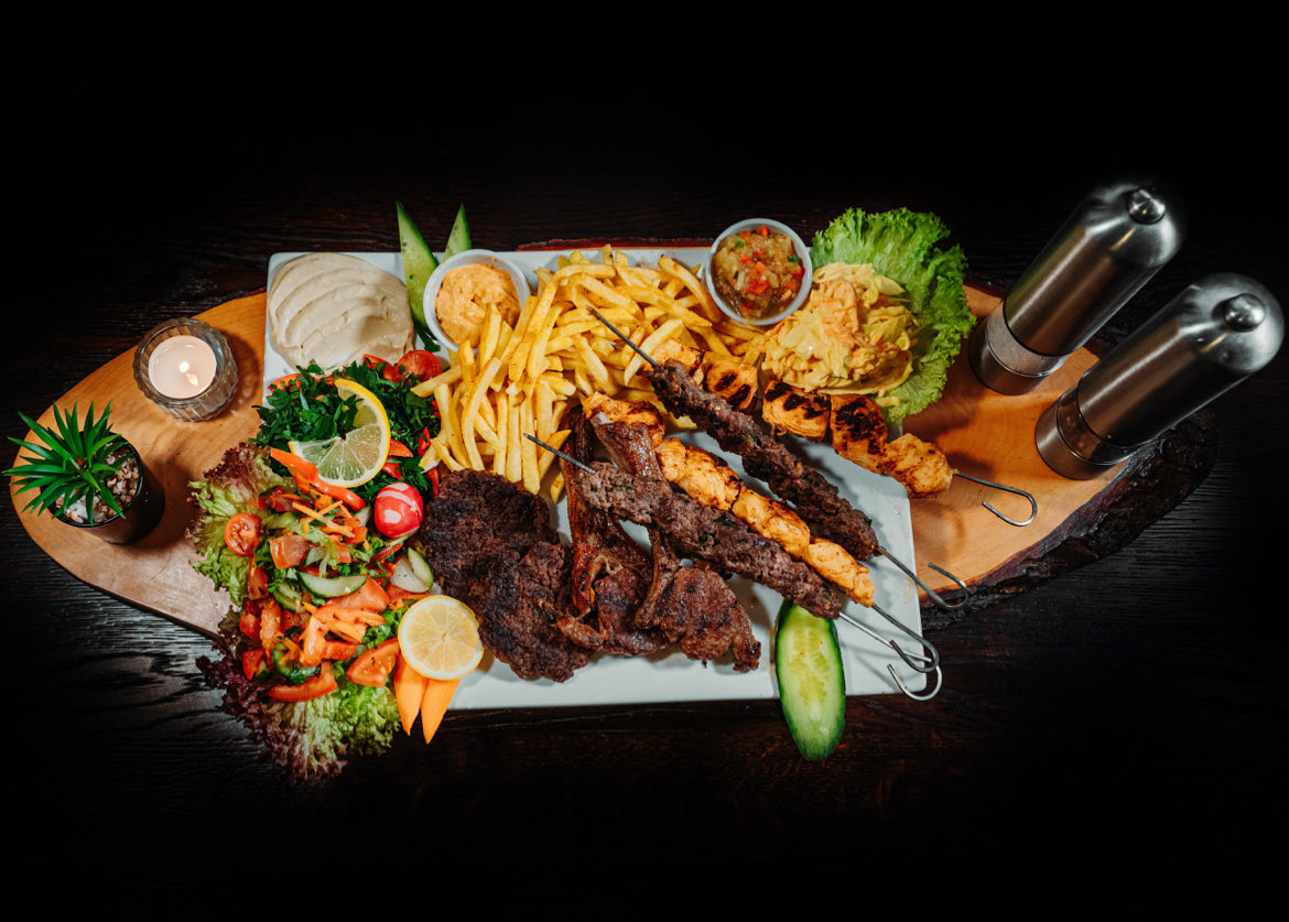 Genießen Sie unser Grillmix für zwei Personen und tauchen Sie ein in eine Welt des Geschmacks! Neben Reis und Pommes erwarten Sie ein zarter Hähnchenspieß, ein saftiger Kebabspieß, ein köstliches Lammkotelett und ein krosses Stück Fleisch. Dazu servieren wir Ihnen unsere hausgemachte Dips Sauce, frisches Grillgemüse und knackigen Salat. Perfekt für ein genussvolles Grillabenteuer zu zweit
